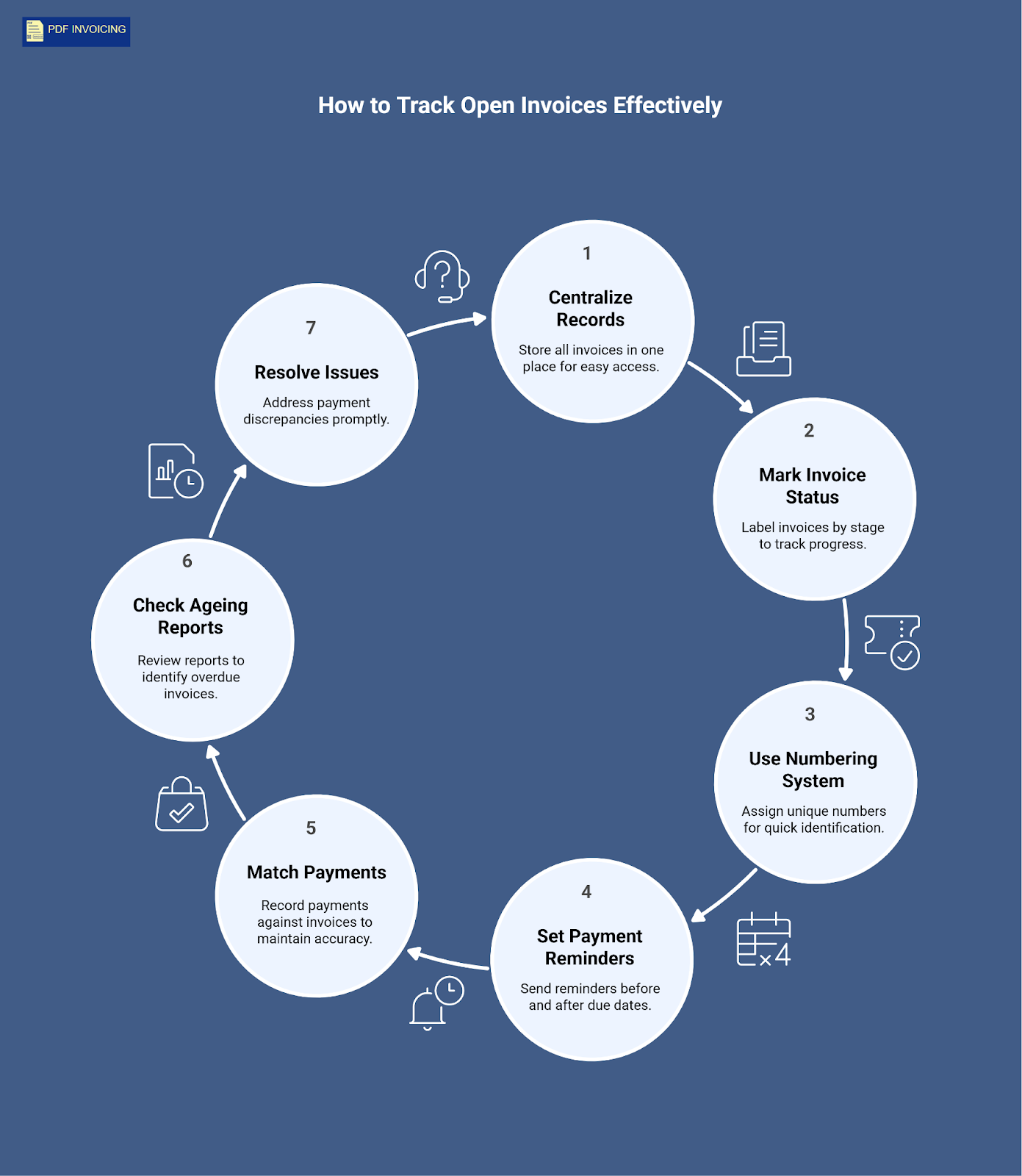 It helps to label every invoice according to its stage, such as “Sent,” “Partially Paid,” “Paid,” or “Overdue.” This way, you can quickly see which invoices need action and which are already settled.